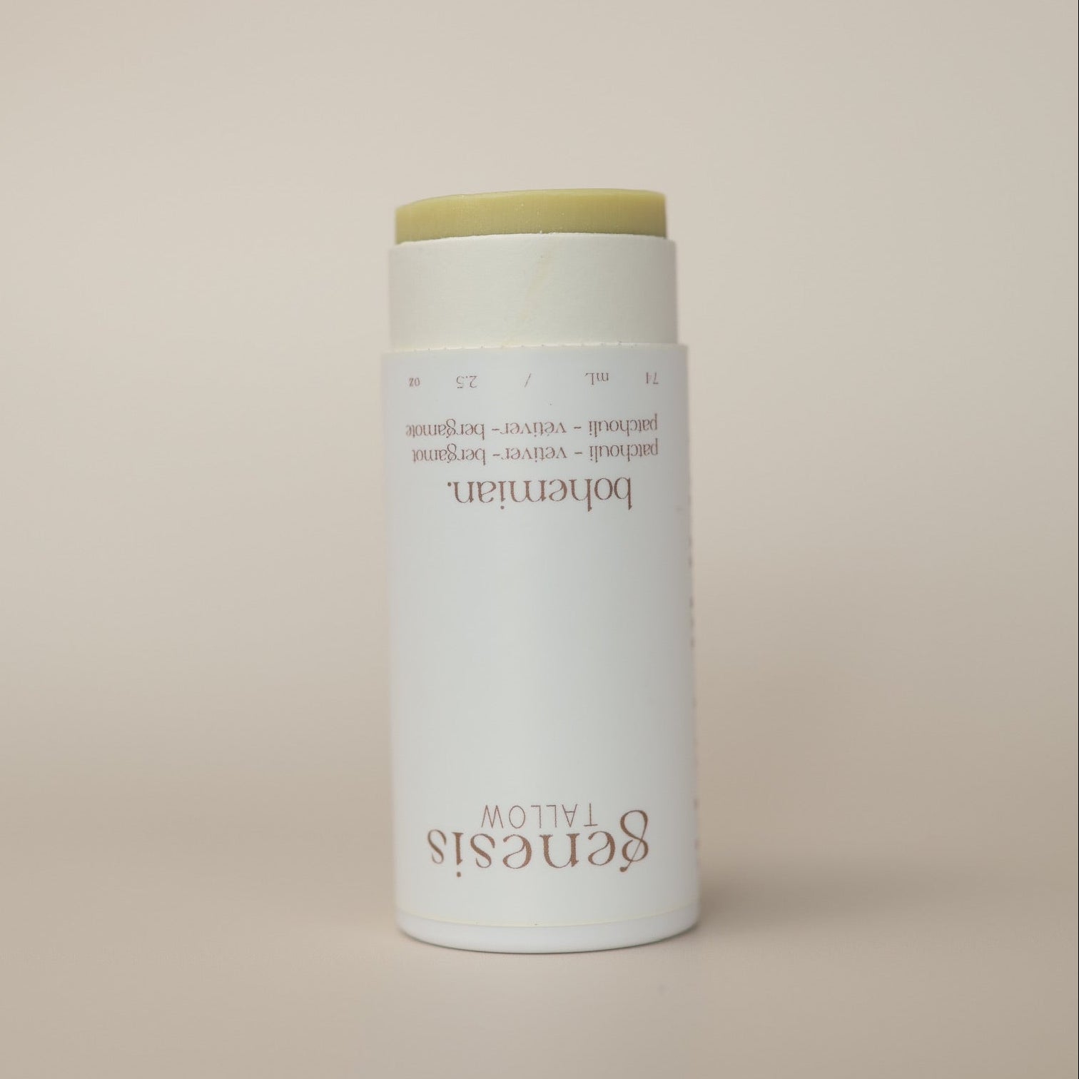 Ingredients: Grass-Fed/Finished Beef Tallow, Arrowroot Powder, Coconut Oil, Beeswax, Non-Nano Zinc Oxide, Therapeutic Grade Essential Oils (Patchouli, Vetiver, Bergamot).